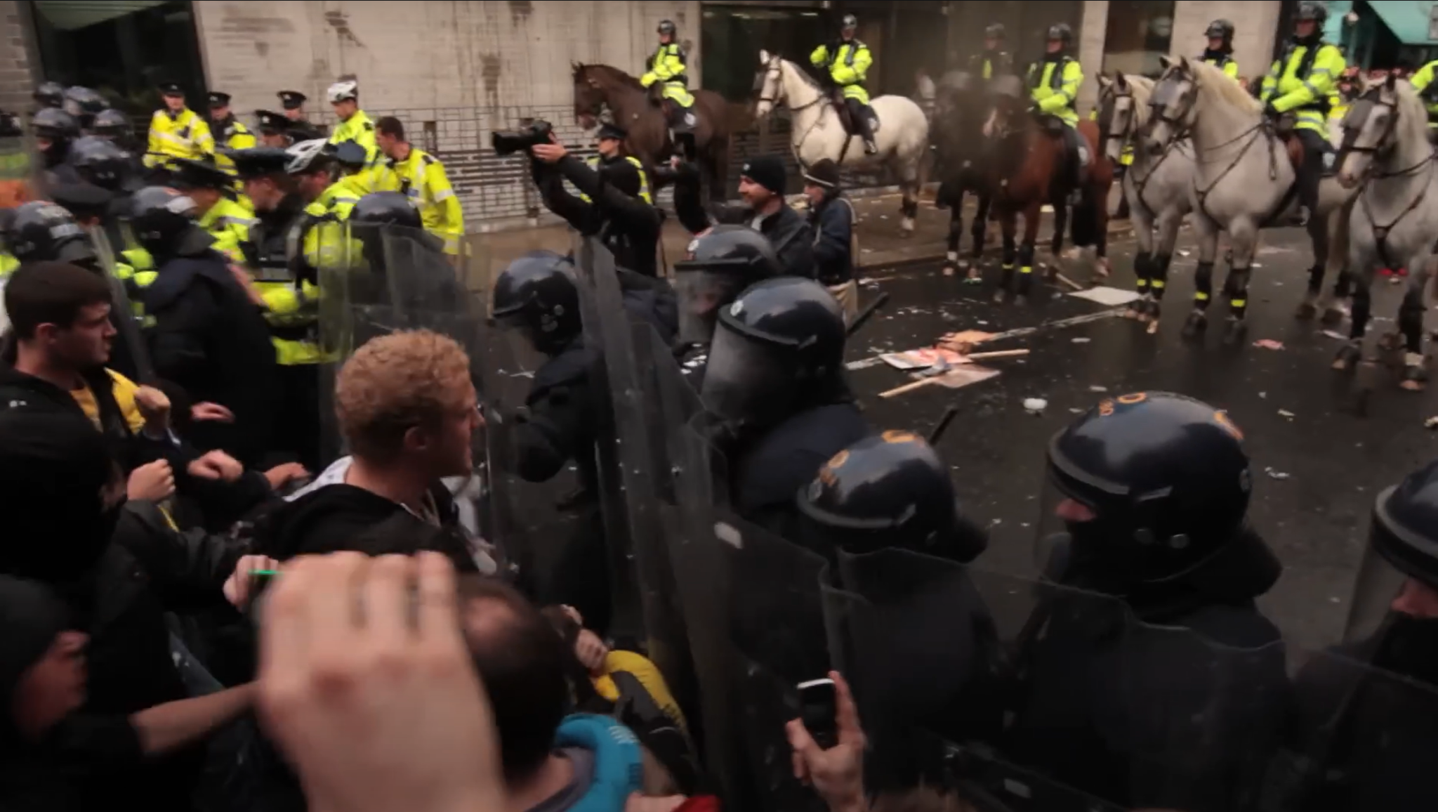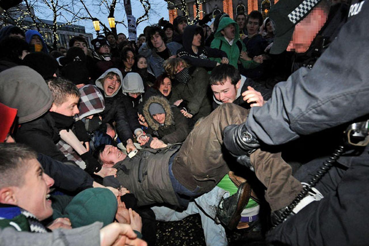 Figure 4: Police remove students from their sit-down protest outside Belfast City Hall on the 9th of December 2010[26]