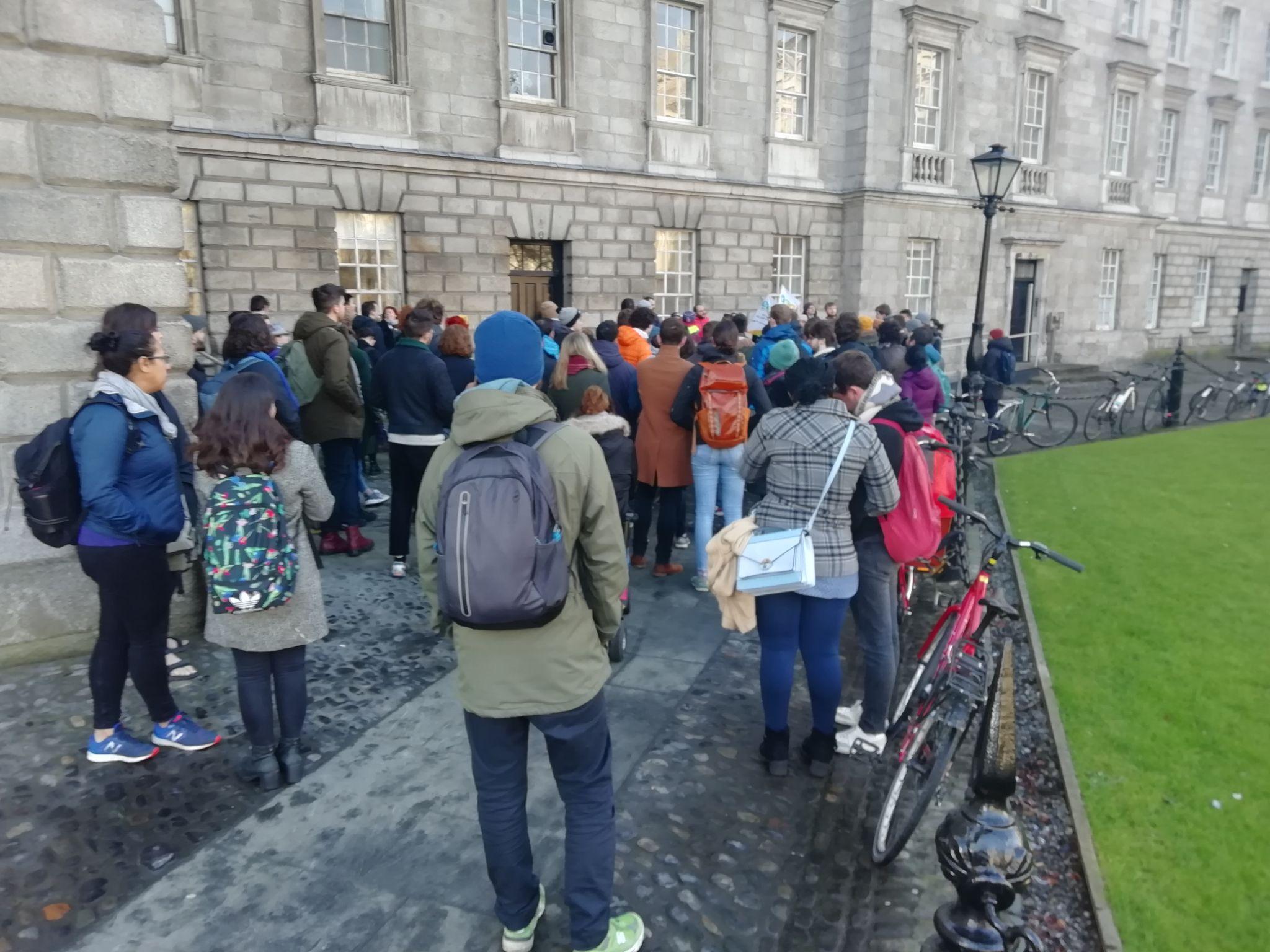Figure 26: Postgraduate students protest at TCD over casual pay rates cuts on February 4th 2020[308]