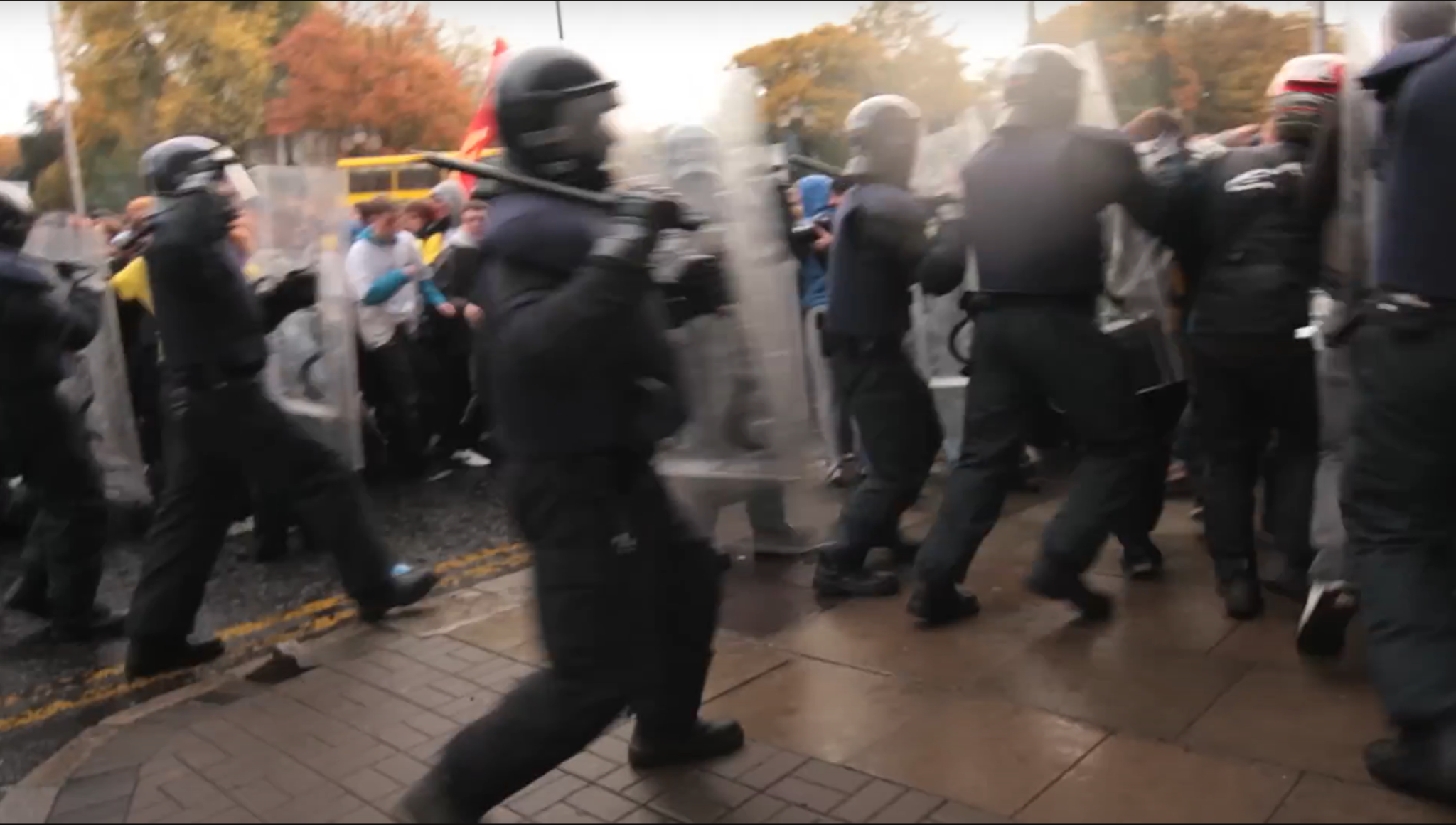 The fall-out from the November 3rd 2010 scandal was immediate, with back-and-forths in the media. The radical students, having been sidelined by the official student movement, retreated and regrouped to regain their strength. This proved difficult, as the events had left them traumatised. A research paper by Liath Vaughan describes the situation as follows: “After the protest FEE disintegrated and many of my participants attributed this to the protest and the lack of a ‘mutual care plan’ in place to deal with the experience of the day […] After the protest, FEE were in disarray and although the action had created momentum and publicity around FEE, interviewees felt that FEE did not have the resources or capacity to deal with the fallout and were in disarray because of a lack of trust. […] ‘we didn’t really know how to capitalise on what had just happened and how to turn that into momentum into another struggle’”[13]. Student activist Conall Ó’Dufaigh concurs, saying that “We didn’t really have any conversations about the impact of being beaten up on our mental health, let alone the impact of being arrested or just the regular stress of activism. I feel this contributed to tensions within the movement. Despite our progressive politics there was probably a bit of a macho attitude there. We had a major drive for students to report their injuries to the Garda Ombudsman. I had a bunch of bruises from November 3, but I never put in a report about myself. I imagine there were others like me”. In addition he points out that intergroup tensions were present, specifically “different political parties, particularly those with some form of democratic centralism, were sending their activists to our meetings with prepared arguments on what we should do next”, highlighting the presence of Trotskyist entryism which had a negative effect on group unity. As he highlighted earlier, “We had drive, but not direction”, and in conclusion “Long story short is that we failed to build on the momentum we had gained. And I think it comes down to organisation. Our equivalent groups in the UK very shortly afterwards had a similar headline grabbing protest, but in their case they were far better organised beforehand and in a better position to capitalise in the months ahead”. Another student activist who was chanting outside the Department of Finance during the sit-in, Páidí McCarrick, recalls that “It was completely non-violent and there was a sense of empowerment following the great energy that was on the demonstration. We were standing against a coalition who were sliding into oblivion and selling us out in the process. It was a nuisance of course, but that was the point. And it was something more than what had happened in previous years. The response from the Gardaí was pretty brutal and many of those caught up in the violence – which included kettling, violent dispersal, batoning, and horse charges – were likely on their very first demonstration. We were Celtic Tiger babies and that was the first taste of state power for many I’m sure” and that the movement “dissipated for a while as we dealt with that. I’m sure it was traumatic for many and as a group I think we could have dealt with that better”. He continues, saying that “FEE actions were always met with more violence and legal threats for the fact that they weren’t performative. The egging at UCD and Castlebar occupation brought a lot of stress towards the students in FEE and I think as a wider national network we should have handled that better in terms of support. Burnout, graduation and emigration, internal relationships all took its toll”. It is certain that the events of November 3rd 2010 marked a ‘traumatic departure’[14] for the student movement in which protestors were confronted with the power of the state, shattering democratic illusions and revealing raw force behind liberal ideology. As a result of failing to reinscribe events within a shared discourse, unlike their counterparts in the United Kingdom who proclaimed the Millbank Tower clashes on November 10th 2010 as a symbol of defiance, the radical vanguard of the student movement had been weakened, and this undoubtedly affected the broader student movement and anti-austerity movement too. The state forces lockstep with the leadership of the official student movement, tightening into one rigid assemblage of disciplinary power, acting in the shadow of the despotic signifier of paternalism; and so at one point in time the students chant, hopeful to make change by appealing to the state, and at the next the state responds, and everything changes, as the students are struck by the batons of the Gardaí, and the horses are charged ahead, and skulls are cracked, and faces are streaked with blood, and screams are heard, and it is as such that this hammer is wielded, comes crashing down, on the people. The symbolic order is disrupted; the event cannot be assimilated; apathy sets in as the new signifier after the rupture. The message becomes: ‘Feign to fight back, performatively – do not cross this line!’. There was no Irish Corbynism because there was no Irish Millbank Tower; there is Irish apathy because there was Irish November 3rd 2010.