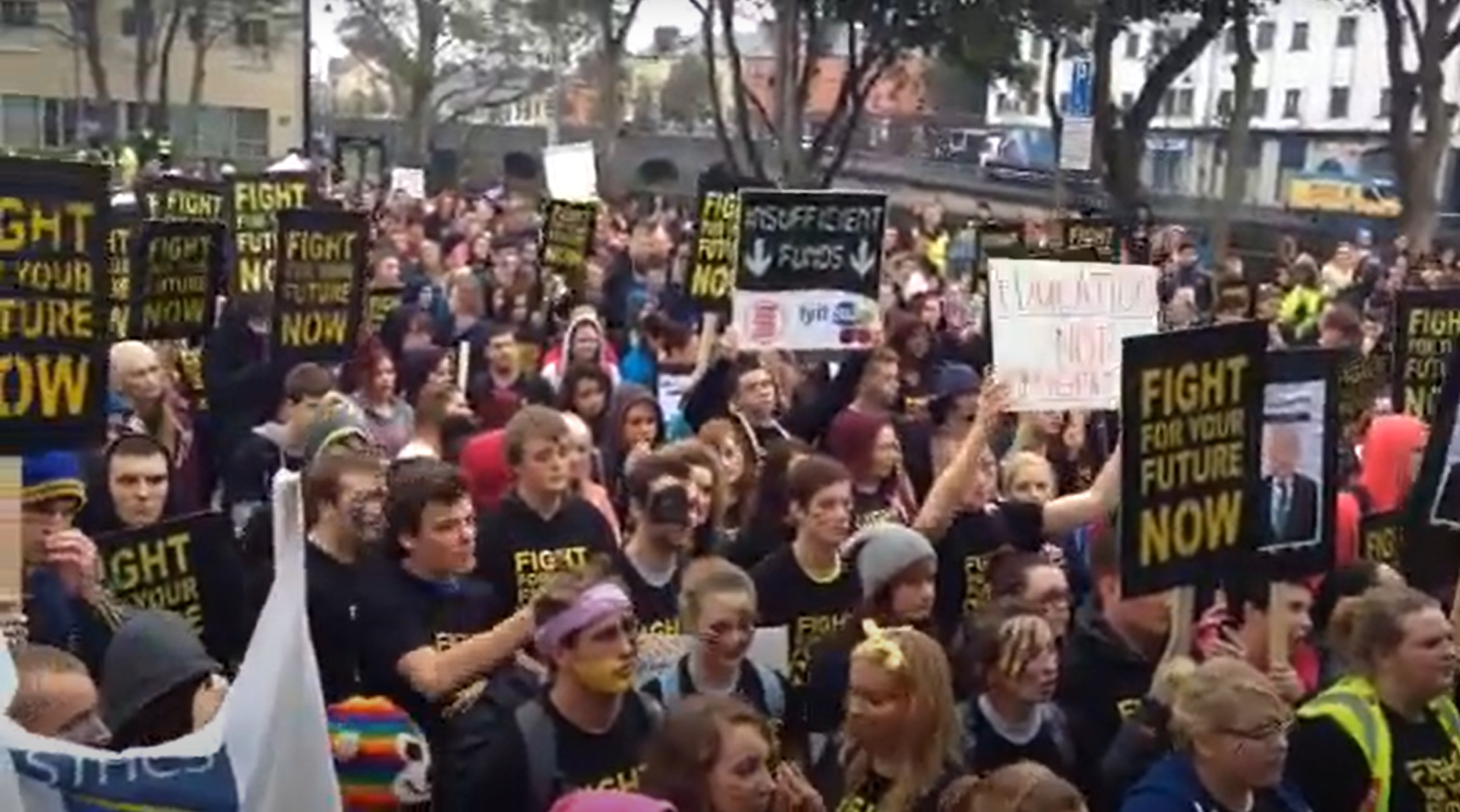 Student Movement in the United KingdomA brief comparative look at the student movement in the United Kingdom (UK) contrasted with the Irish one is an interesting case study. There is a diverging trajectory. In this analysis, we rely on secondary sources[190][191]. The student movement in the UK went down a similar, but ultimately different path. At the outset, it can be stated that radical leftism in the UK is grounded in historical tradition, and represents a stronger force than the Irish one. To repeat the words of student activist Conall Ó’Dufaigh about the November 3rd 2010 protest: “Our equivalent groups in the UK very shortly afterwards had a similar headline grabbing protest, but in their case they were far better organised beforehand and in a better position to capitalise in the months ahead”. There were also considerable links between the student movement and the broader anti-austerity movement, from which a broad coalition emerged (including Novara Media, Aaron Bastani, Ash Sarkar, Owen Jones) which eventually fed into Corybnism post-2015. Notably, a lot of socialist theory was produced, more in Britain than in Ireland during this time. When austerity hit, the defining moment for the student movement was the storming of Millbank Tower, the Conservative Party headquarters, on November 10th 2010 with about 1,000 participants, with an estimated 52,000 students and lecturers marching against the government’s proposal to triple tuition fees and cut grants[192]. The groups involved were the National Union of Students (NUS), the University and College Union (UCU) and the left-wing umbrella group, National Campaign Against Fees and Cuts (NCAFC). NCAFC was composed of a Trotskyist tendency, as well as an anarchist tendency, with the former preferring entryist and dual-power strategies for the NUS and the Labour Party, and the latter fetishizing direct action. Similarly to the Irish case, the NUS and its President Aaron Porter denounced the direct action taken by the student protestors at Millbank Tower. In addition, similarly as in the Irish case, national rallies called by the NUS (and sometimes the NCAFC) decreased in attendance further and further as the years went on and the movement faced defeat. In 2012, the coalition government of the Conservatives and Liberal Democrats tripled tuition fees to £9,000 per year. The Liberal Democrats, similarly to the Irish Labour Party, pledged not to increase tuition fees but broke their pledge. In 2017, this was raised to £9,250 per year by the Conservative Party majority government. For students from the North of Ireland, a ‘home fees’ system was introduced, capped at £3,465 per year in 2012 and £4,030 per year in 2017. Not all of the official student movement denounced the protestors, however. For example, Clare Solomon, President of the University of London Union (ULU) defended the events, highlighting a radical presence within official structures. In addition, the protestors capitalized on the clashes with the police, presenting it as a symbol of defiance, unlike the equivalent in Ireland, where activists were demoralized.