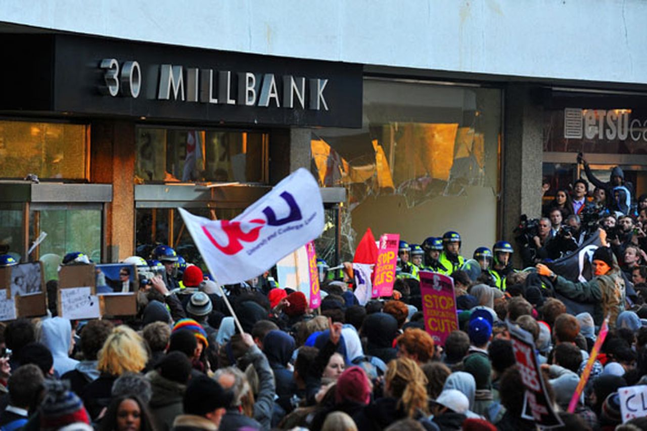Student Movement in the United KingdomA brief comparative look at the student movement in the United Kingdom (UK) contrasted with the Irish one is an interesting case study. There is a diverging trajectory. In this analysis, we rely on secondary sources[190][191]. The student movement in the UK went down a similar, but ultimately different path. At the outset, it can be stated that radical leftism in the UK is grounded in historical tradition, and represents a stronger force than the Irish one. To repeat the words of student activist Conall Ó’Dufaigh about the November 3rd 2010 protest: “Our equivalent groups in the UK very shortly afterwards had a similar headline grabbing protest, but in their case they were far better organised beforehand and in a better position to capitalise in the months ahead”. There were also considerable links between the student movement and the broader anti-austerity movement, from which a broad coalition emerged (including Novara Media, Aaron Bastani, Ash Sarkar, Owen Jones) which eventually fed into Corybnism post-2015. Notably, a lot of socialist theory was produced, more in Britain than in Ireland during this time. When austerity hit, the defining moment for the student movement was the storming of Millbank Tower, the Conservative Party headquarters, on November 10th 2010 with about 1,000 participants, with an estimated 52,000 students and lecturers marching against the government’s proposal to triple tuition fees and cut grants[192]. The groups involved were the National Union of Students (NUS), the University and College Union (UCU) and the left-wing umbrella group, National Campaign Against Fees and Cuts (NCAFC). NCAFC was composed of a Trotskyist tendency, as well as an anarchist tendency, with the former preferring entryist and dual-power strategies for the NUS and the Labour Party, and the latter fetishizing direct action. Similarly to the Irish case, the NUS and its President Aaron Porter denounced the direct action taken by the student protestors at Millbank Tower. In addition, similarly as in the Irish case, national rallies called by the NUS (and sometimes the NCAFC) decreased in attendance further and further as the years went on and the movement faced defeat. In 2012, the coalition government of the Conservatives and Liberal Democrats tripled tuition fees to £9,000 per year. The Liberal Democrats, similarly to the Irish Labour Party, pledged not to increase tuition fees but broke their pledge. In 2017, this was raised to £9,250 per year by the Conservative Party majority government. For students from the North of Ireland, a ‘home fees’ system was introduced, capped at £3,465 per year in 2012 and £4,030 per year in 2017. Not all of the official student movement denounced the protestors, however. For example, Clare Solomon, President of the University of London Union (ULU) defended the events, highlighting a radical presence within official structures. In addition, the protestors capitalized on the clashes with the police, presenting it as a symbol of defiance, unlike the equivalent in Ireland, where activists were demoralized.