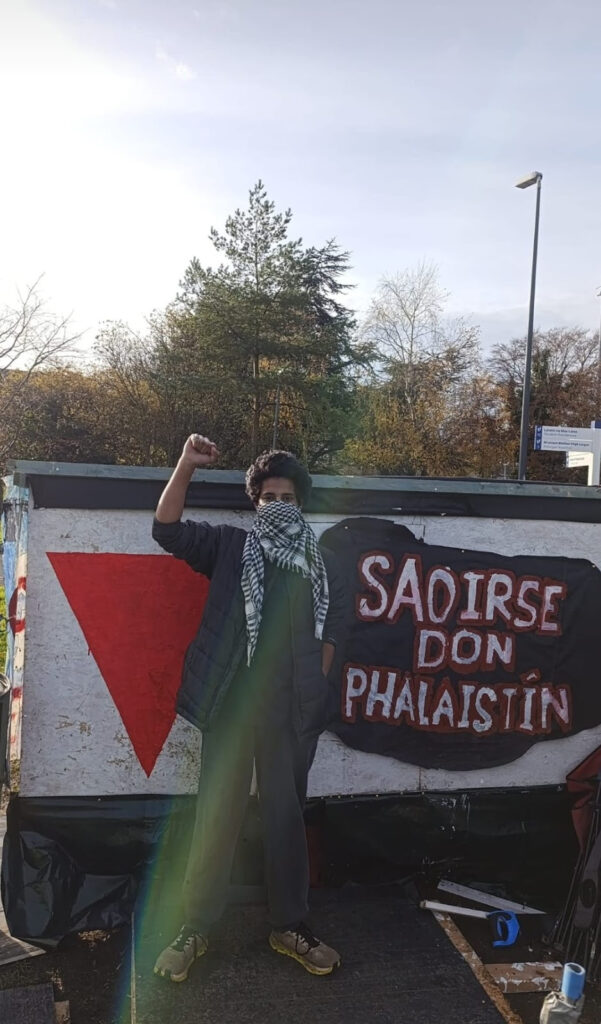 “For 88 days, the UCD Encampment has stood as a legal peaceful student protest demanding that the university cut ties with Israeli institutions deeply embedded in weapons development and the Israeli military-industrial complex. Instead of engaging with these concerns—as NCAD did—UCD has responded by escalating intimidation, secrecy, and retaliation. Instead of addressing our central demand—reviewing partnerships with Technion, Ben-Gurion University, and others involved in weapons used in Gaza—UCD has focused its energy on threatening students, blocking dissent, and attempting to jeopardise my immigration status or academic standing, “ says Basim. “UCD and my study-away provider have initiated disciplinary proceedings based on unsubstantiated and inaccurate claims, including the assertion that I shouted “allegations that UCD supports acts of genocide.” This is not misconduct. It is freedom of speech—protected political speech grounded in evidence, backed by extensive reporting, echoed by journalists, academics and students alike, and the reality that forced, among others, Trinity College Dublin to revoke ties. ”, he continues. “They are coming after students, not because we are disruptive, but because we are standing against genocide, against scholasticide, and against the institutional complicity that allows both to continue, “ he concludes.